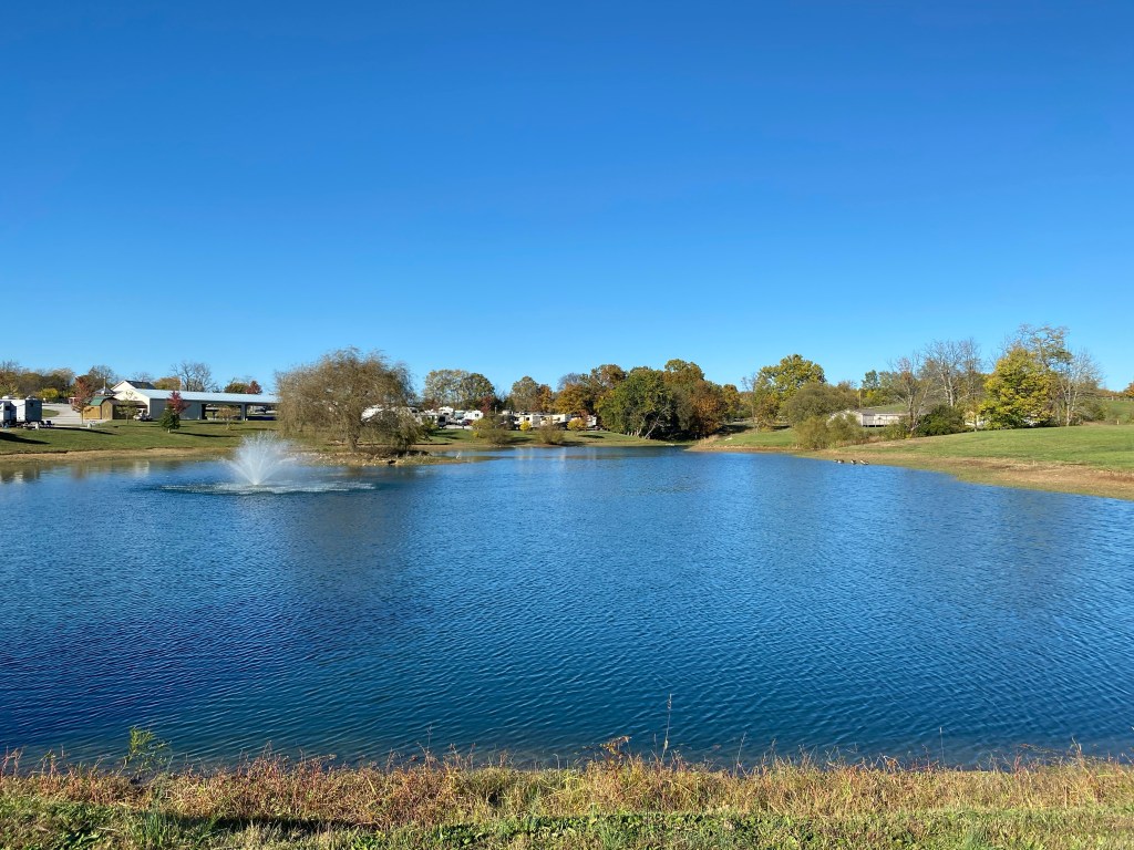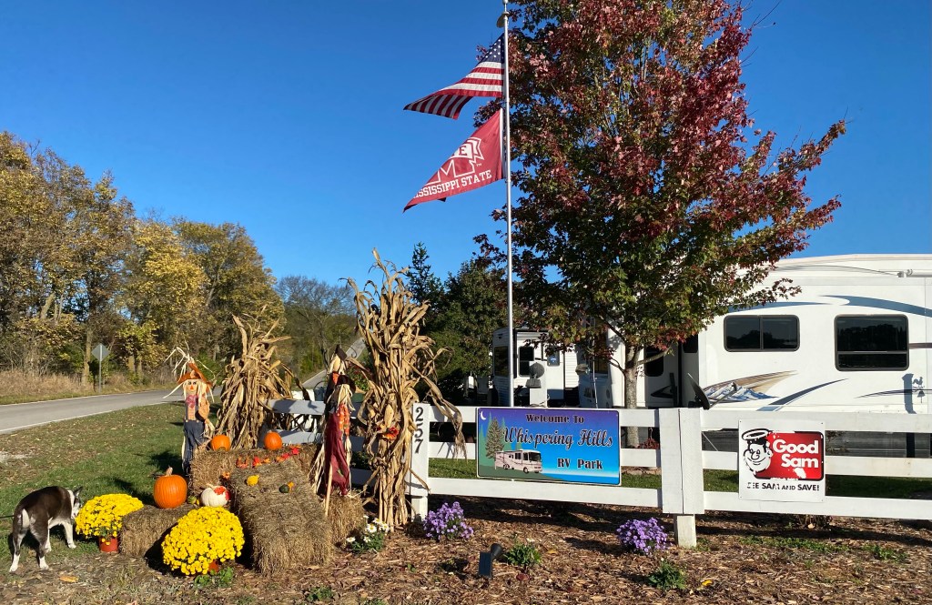 We pulled into Whispering Hills campground in Georgetown, Kentucky at 1515 hrs. The weather was just beautiful – 70, sunny, light breezes. We completed our setup and after a little rest, went out for a good walk.