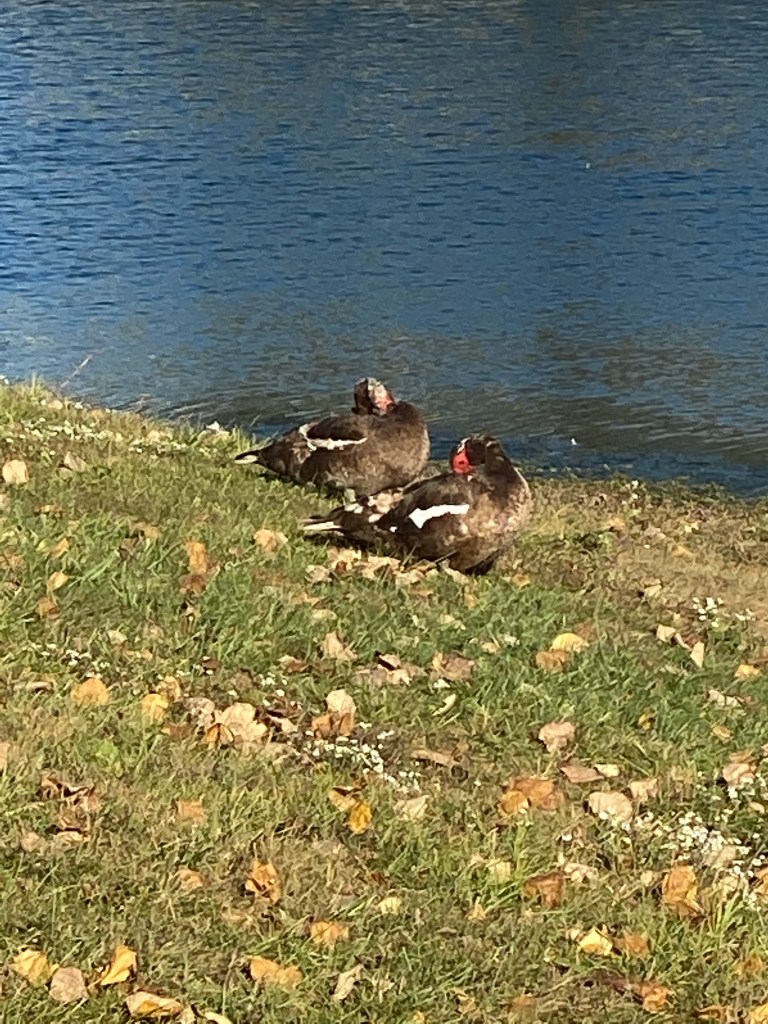This campground is very large and appears to have a mix of both seasonal and transient campers. Rigs end up being parked very close together. A lake by the playground and lush green grass is very inviting. This pair of ducks were out enjoying the lovely fall day.