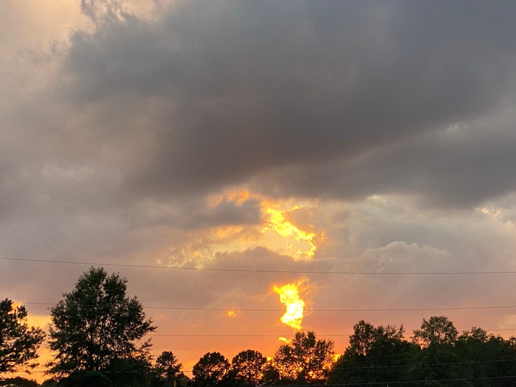 We took a walk this evening and were treated to a beautiful sunset. The RV office had some little cookbooks that are supposed to be local recipes and some Arkansas history and trivia. Two of the recipes – Lima Bean and Tuna Supreme, and Madarin (sp) Plum Sauce and Fish Sticks – won’t be appearing in the Dumont kitchen any time soon! It should be interesting to read further…
